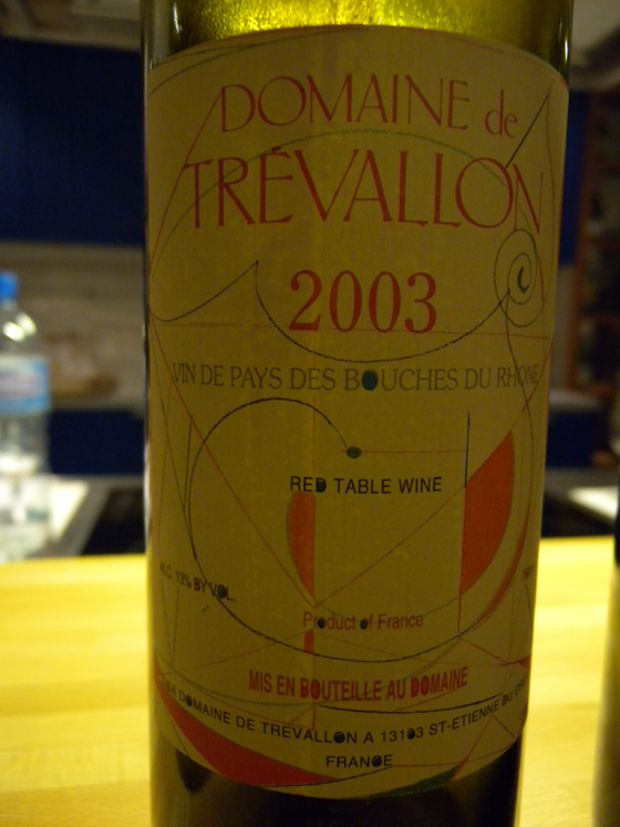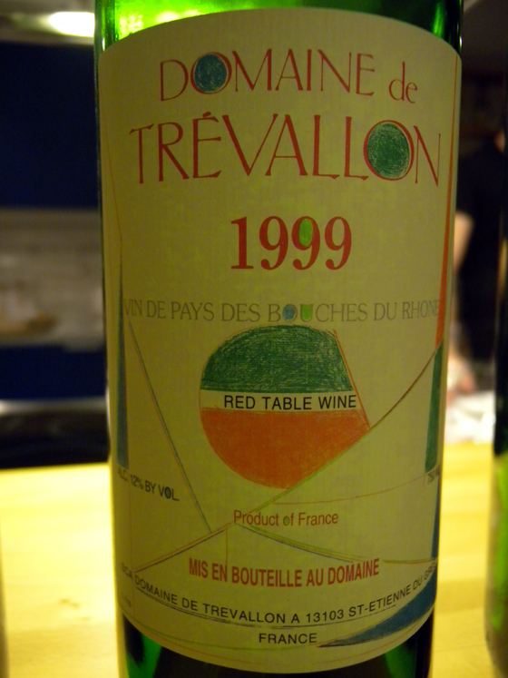 Nous nous retrouvons ce jeudi 4 novembre 2010, Patrick et moi-même pour une verticale du Domaine de Trévallon. La présence d’Eloï et de sa femme Floriane vont donner une autre dimension à cette dégustation. Ils en sont à leur 34ème vendanges si on compte celle de 1976. Ils ont commencé d’ailleurs officiellement en 1977. Ils ont aujourd’hui 17 hectares de rouge et 2 hectares de blanc. Pour le blanc plus rare et moins connu, leur premier millésime était en 1991 avec des plants de roussane et de marsanne. En 1998, Eloï a rajouté un peu de chardonnay avant de finir avec 4-5% de grenache blanc en 2009.