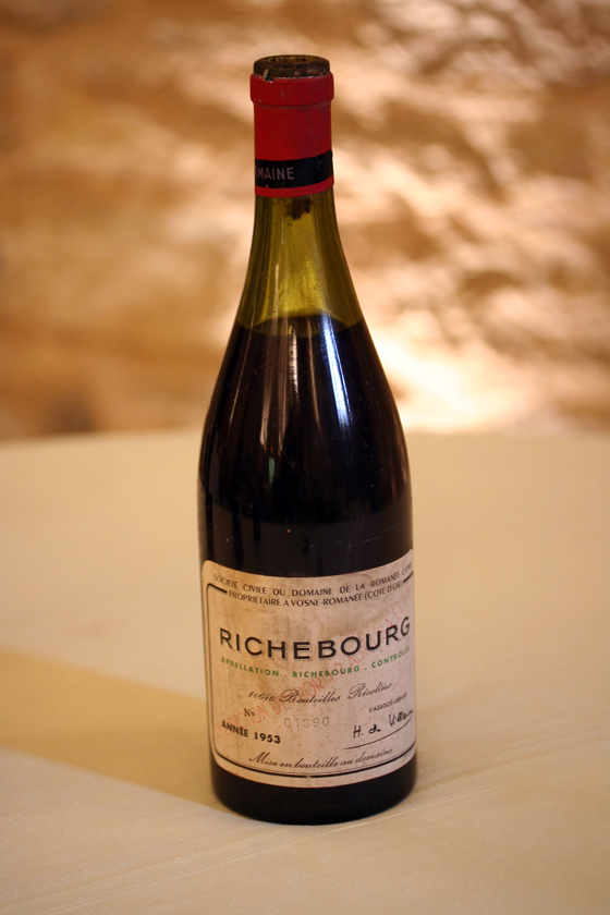 Une bouteille qui fait polémique, puisque l’étiquette n’est pas authentifiée par le Domaine et les divers experts qui se sont penchés sur le sujet pensent à un faux. La question qu’on peut sérieusement se poser et est de savoir s’il fallait mettre cette bouteille dans une dégustation entre amateurs éclairés afin d’éviter toute polémique. Comme finalement la bouteille a été ouverte (évidemment, il n’y avait aucune personne suffisamment qualifiée dans l’assemblée, ce soir-là, pour certifier l’authenticité d’un vin de la DRC ou d’un autre Richebourg de 1942… sauf peut-être son propriétaire…) elle sera commentée, mais avec bien évidemment une certaine réserve !